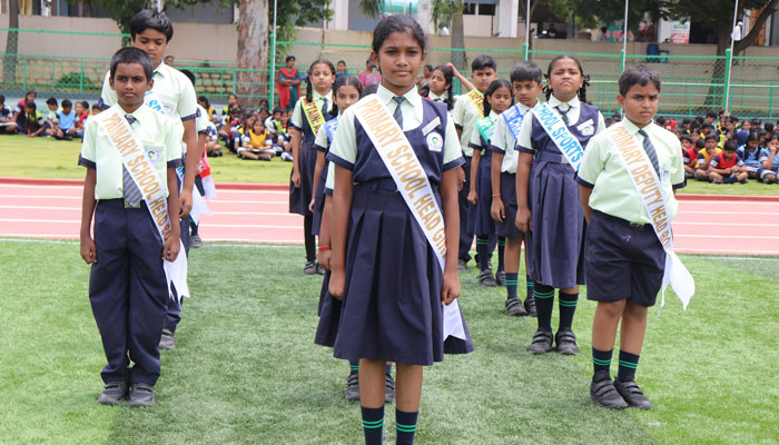The program commenced with the traditional lighting of the lamp, symbolizing the dispelling of darkness and the beginning of a new chapter. The ceremony was graced by the presence of the school’s esteemed Directors, Dr Sudarshan Reddy, Dr AnanthReddy, the Principal Mrs Poorna DeviSrivastava, and the CEO, Mrs. GirijaSingireddy, who inspired the students with their words of wisdom.
